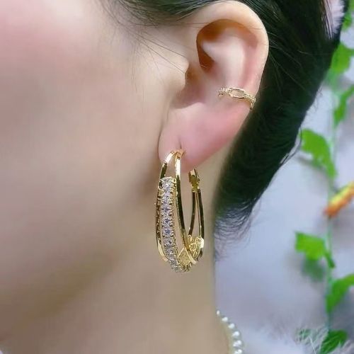 Glamorous Multi-layered Large Round Rhinestone Hoop Earrings with High-end Finish 2 sales