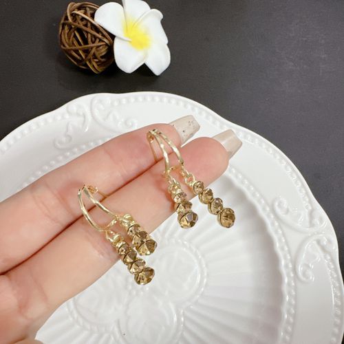 Gorgeous Coffee-Colored Full-Drill Chain Tassel Exquisite Retro Earrings 1 sales