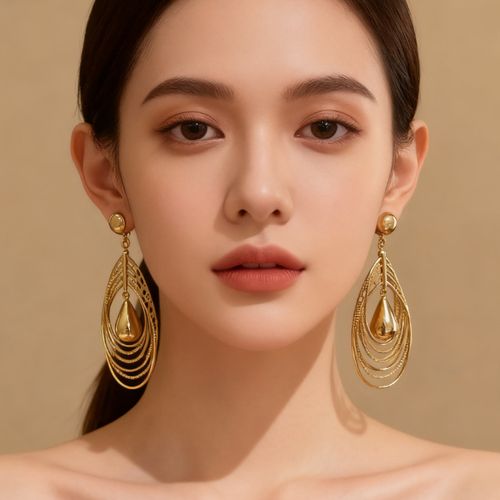 Luxury Gold Multi-Layered Water Drop Long Earrings for Women - Elegant Vacation Style, Unique Statement Earrings