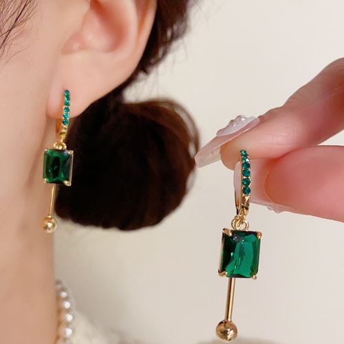 New Arrival Light Luxury Earrings with High-End Appeal: Featuring Elegant Green Square Zircons for a Refined Temperament