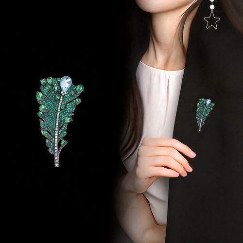 Women's Green Leaf Brooch - Retro French High-End Statement Pin | Elegant Accessory for Clothes & Bags