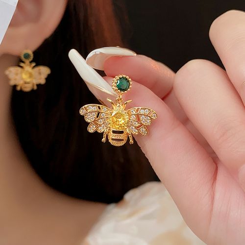 Zircon Bee Small Metal Earrings, Fashionable and Versatile Studs, Elegant Light Luxury High-end Earrings, Symbolizing Wealth
